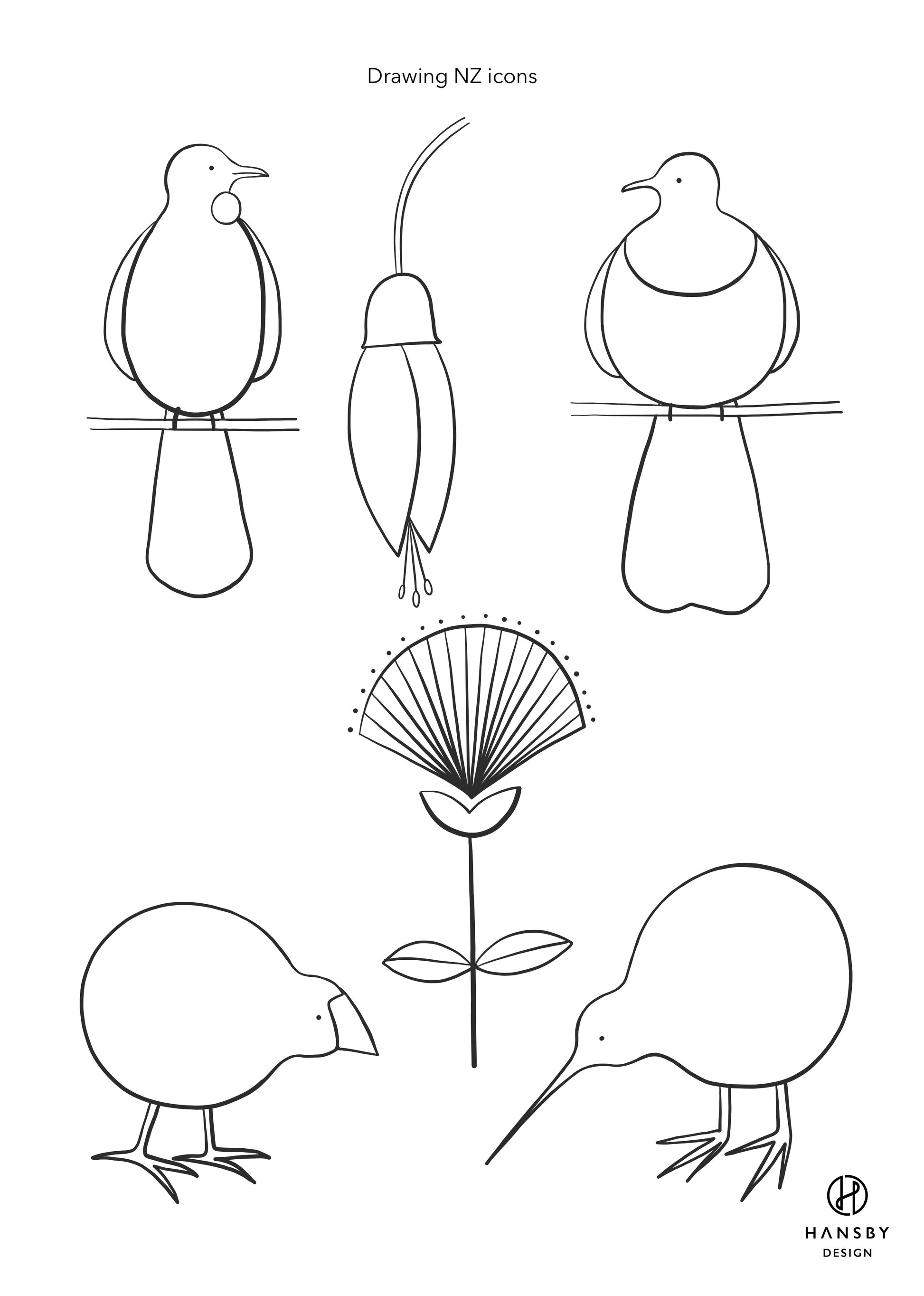 Draw your own NZ birds and flowers with these instruction pages, free to download.