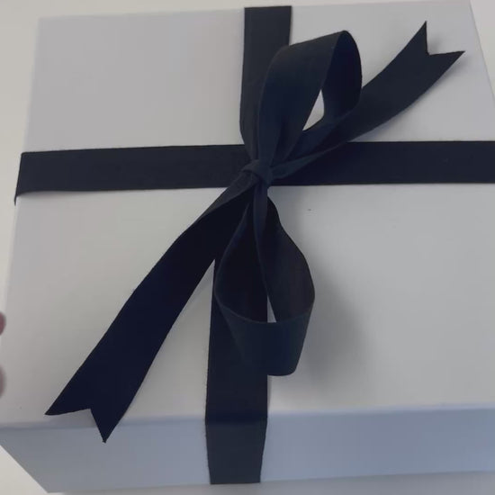 Beautifully contained in a white gift box with black ribbon.